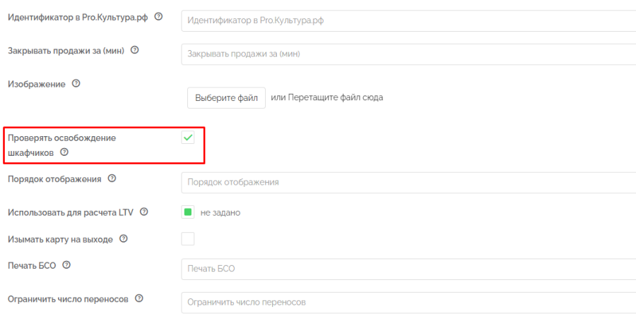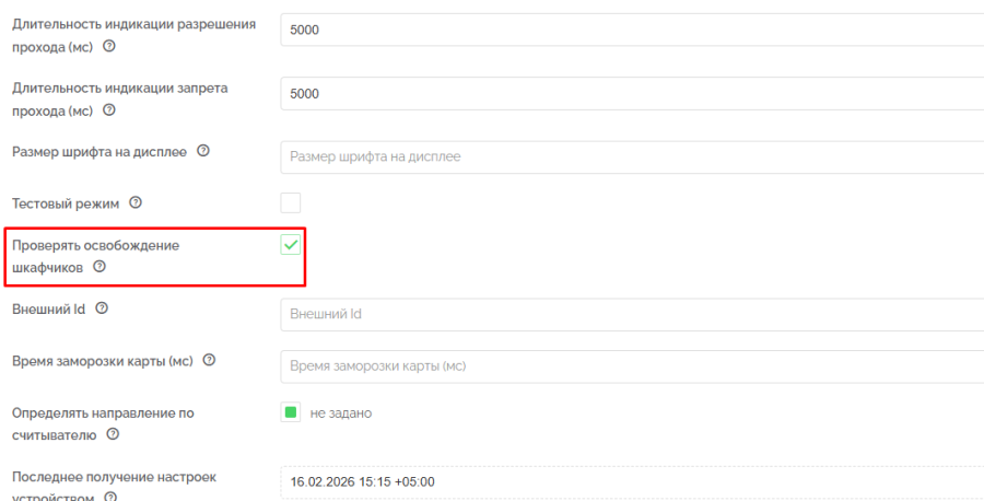 - Поставить галочку в чекбоксе «Проверять освобождение шкафчиков»