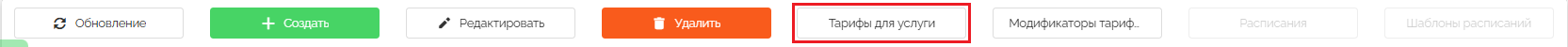 Для настройки тарифа выберете услугу и нажмите кнопку «Тарифы для услуг».