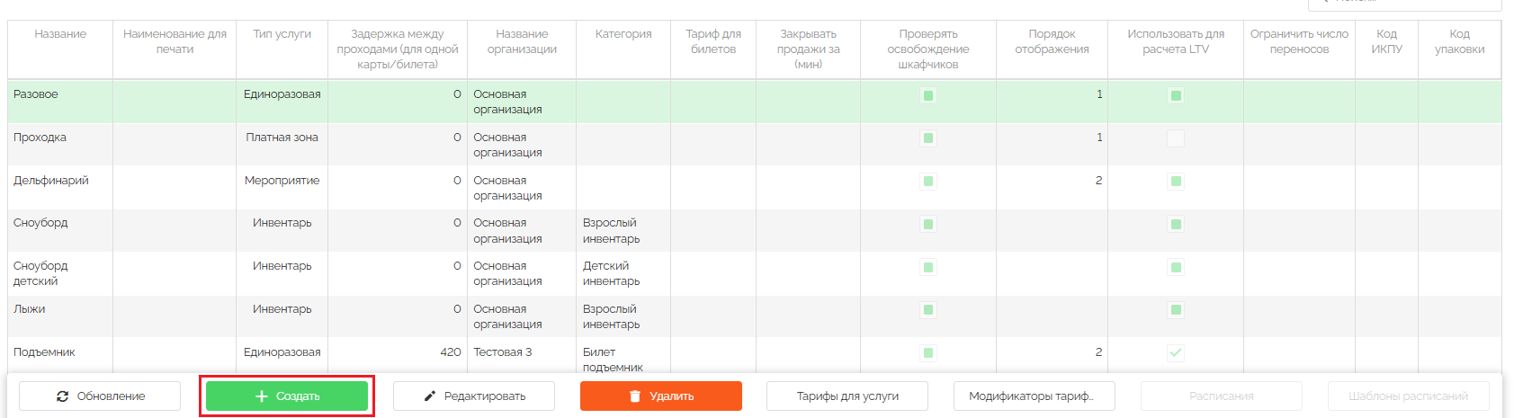 Для того, чтобы на услугу можно было пройти необходимо настроить для неё тарифы.