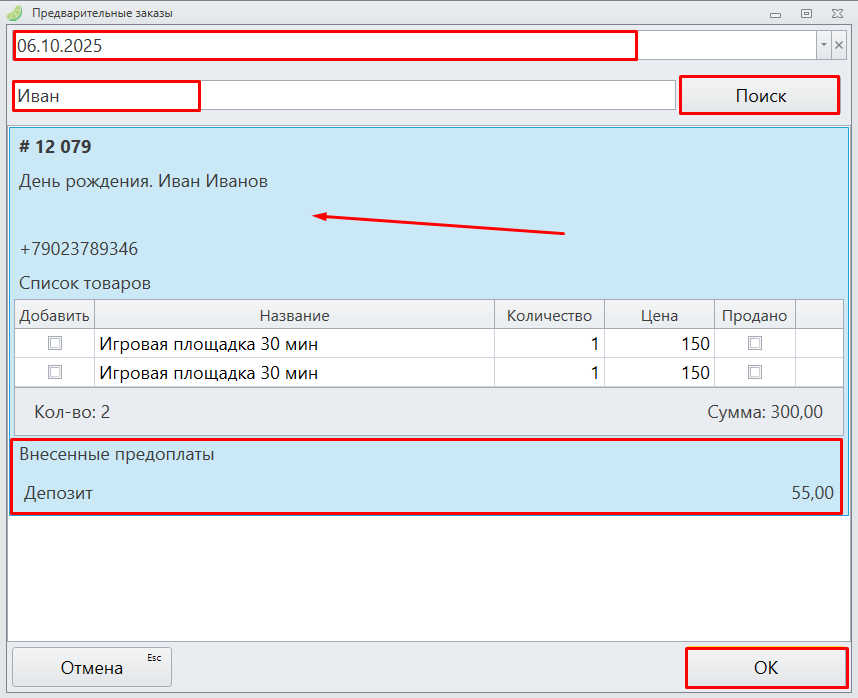2. Введите дату, название предзаказа или номер телефона, на который был оформлен предзаказ.
