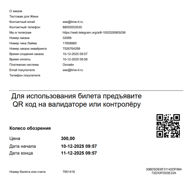 - После оплаты на указанную почту придет письмо с QR-кодами, на которые записаны билеты. Также после оплаты откроется страница, на которой билет можно скачать.