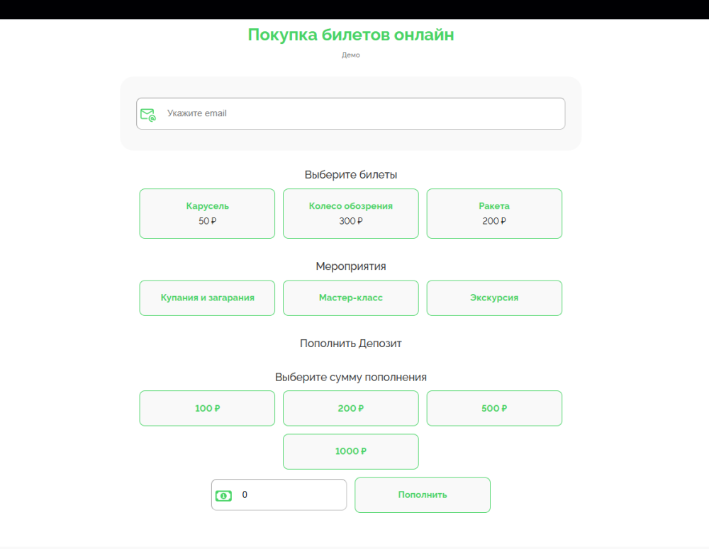 Клиент может не только приобрести билет, но и пополнить депозитный счет при необходимости.