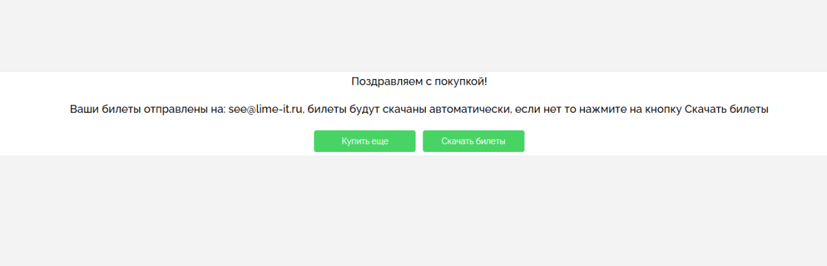 - После оплаты на указанную почту придет письмо с QR-кодами, на которые записаны билеты. Также после оплаты откроется страница, на которой билет можно скачать.