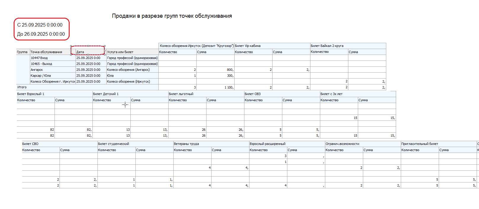 Отчет показывает продажи точек обслуживания, но с групповым слиянием.