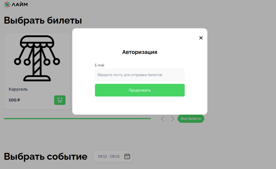 Виджет покупки билетов (Веб витрина) с новым дизайном